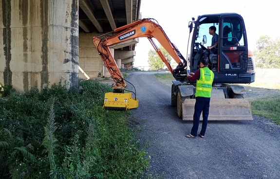 Máy cắt cỏ thủy lực dạng trục băm gắn trên xe đào từ 2,5 đến 6 tấn có năng suất cắt cỏ gấp 5 lần máy cắt cỏ cầm tay, đem lại sự an toàn cho người sử dụng đồng thời cắt được thân cây bụi kích thước đường kính lên đến 3cm.